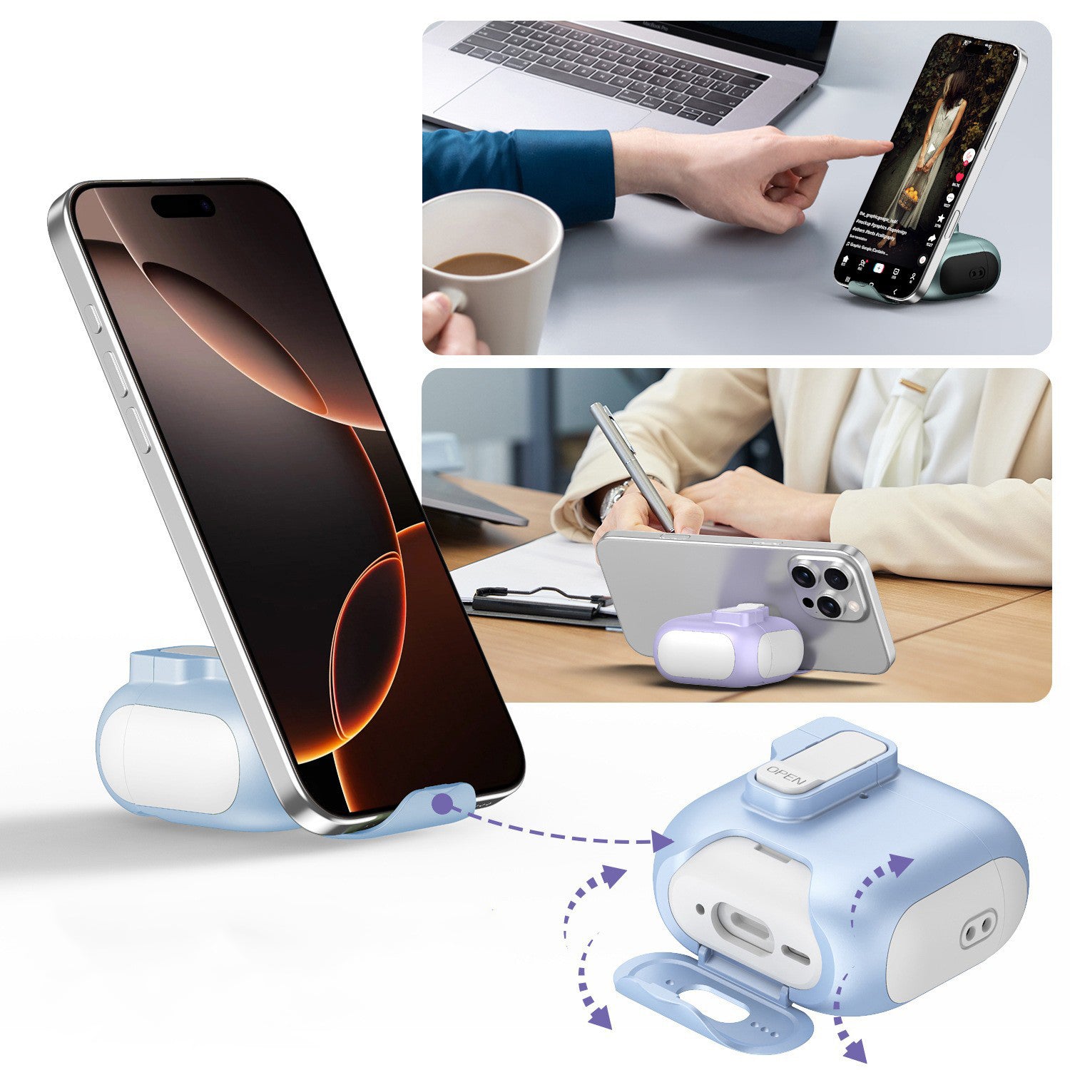 • 📱 Built-In Phone Stand